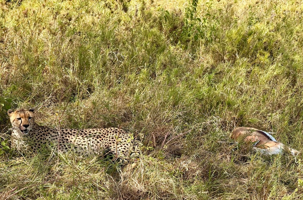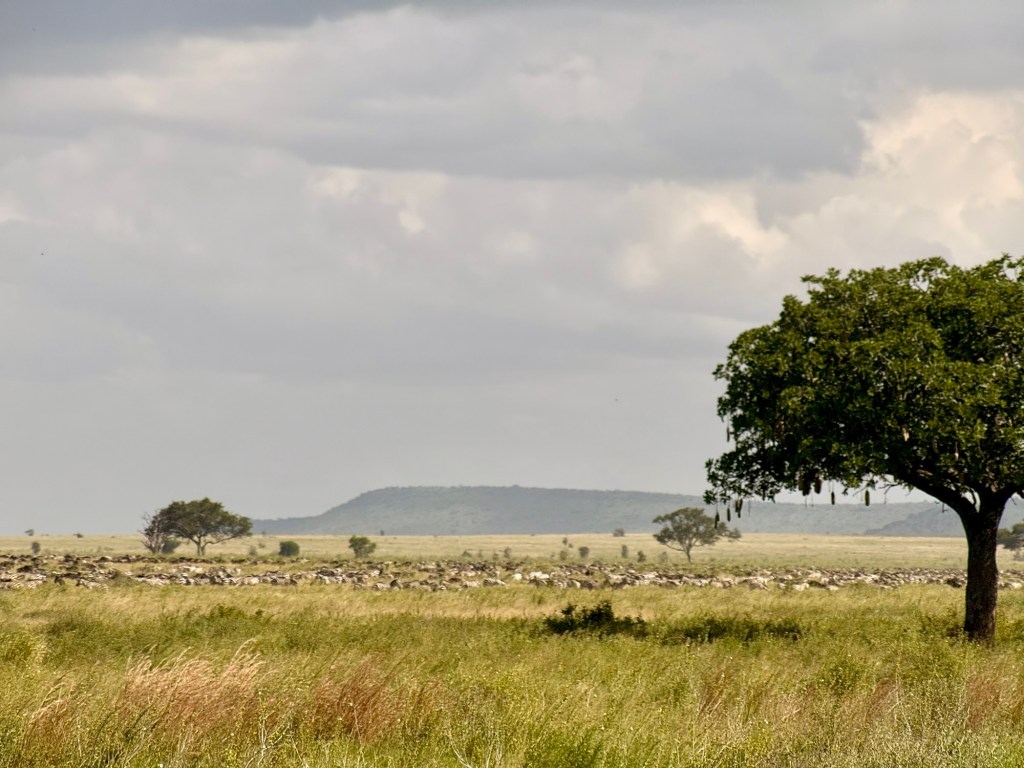It’s been an exciting day on the Serengeti. I asked our guide what it was like in high season, which starts mid June and run through August, and then again in October, November. He said there wasn’t as many wildebeest and zebras as there are migrating now. However, they have eaten the grass down like a monstrous swarm of locusts so you can see anything that hunts on the plain. Cheetah, Leopards and lions are sometimes easier to spot… but our guide has said there have been trips in high season that they saw no big cats. Moral of this story is to go at the end of May like us!!