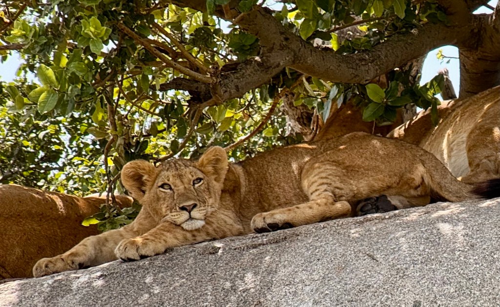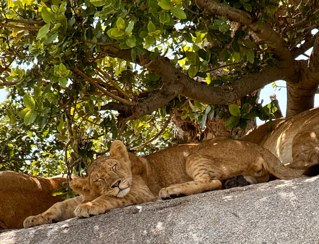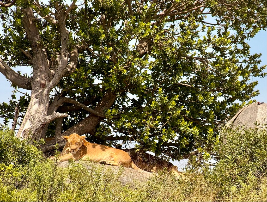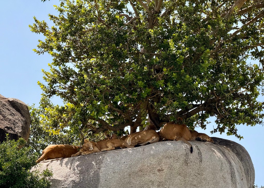 As we continued to drive we saw a lone vehicle close to a copi (looks like a pride rock kind of formation). What an amazing find! An entire pride of lions, save the male, was lounging in the sun!