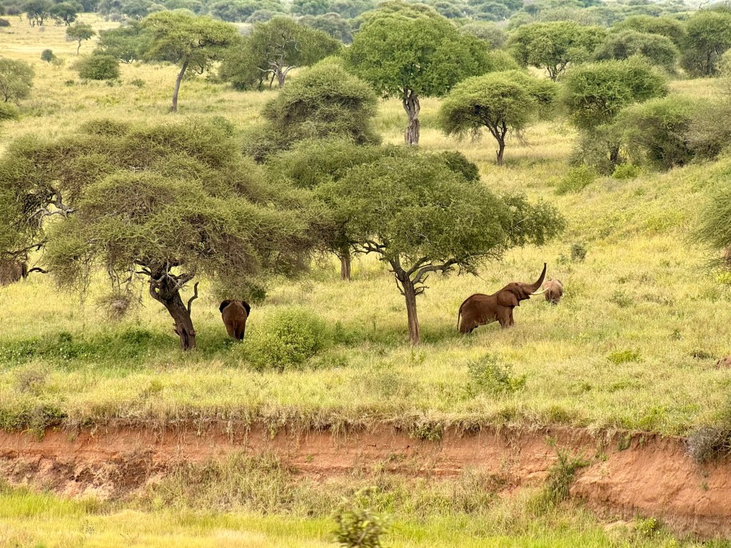 Once back on our way we crossed the river and went down the other side. We saw some small rock hyrax here… a bit like a gofer. Further down the views a crossed the Savanah were stunning and we caught site of a herd of elephants on the other side of the river. They call this park “elephants’ paradise” and it’s no wonder. The luscious landscape would serve them well!